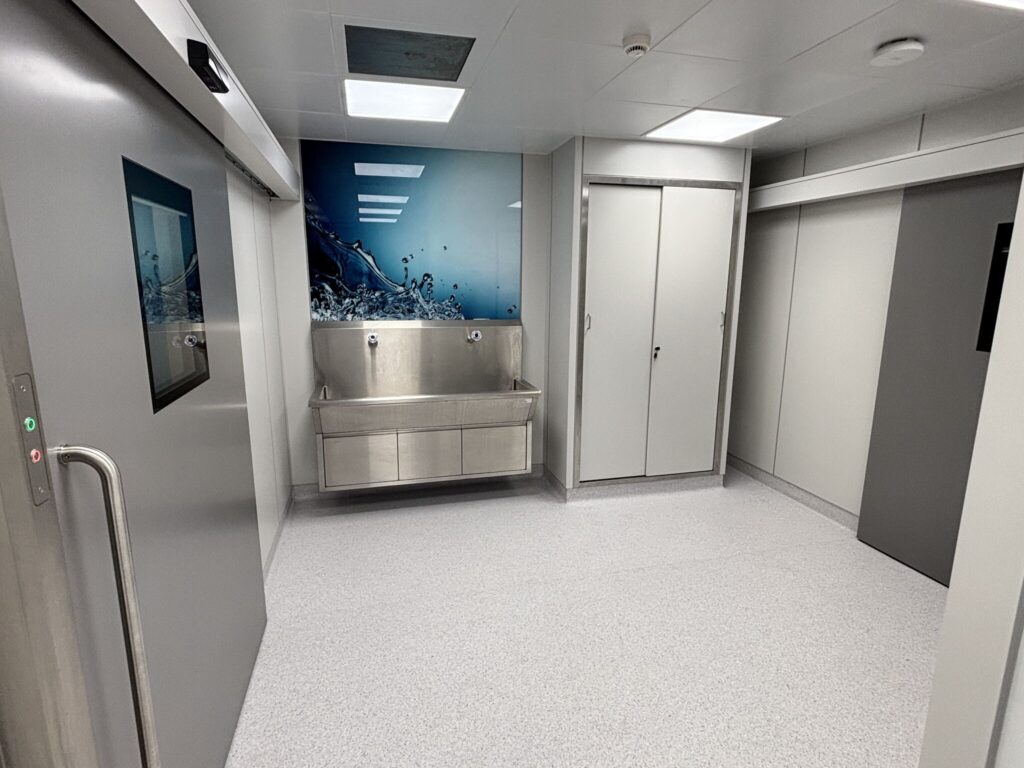 Σχεδιασμένες σύμφωνα με τα υψηλότερα πρότυπα ασφάλειας ασθενών, υγιεινής και χειρουργικής αποδοτικότητας, οι νέες χειρουργικές αίθουσες προσφέρουν ένα πλήρως ολοκληρωμένο και τεχνολογικά προηγμένο περιβάλλον, το οποίο υποστηρίζει τόσο τις τρέχουσες όσο και τις μελλοντικές ιατρικές πράξεις.